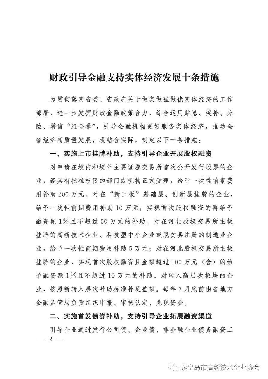 省政府 | 关于印发财政引导金融支持实体经济发展十条措施的通知